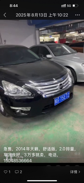 急售14年天籁黑色,2.0排量,舒适版,车况良好,保险到过年三月份,3.5万元