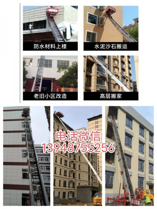 云梯车出租/承接各种高空搬运,水泥河沙门窗玻璃瓷砖防水装修材料,建筑下垃圾,广告牌路灯摄像头空调换挂,楼房搬家高空救援,安全方便快捷,省时省力省钱,欢迎各位老板致电,期待与您的合作,通辽市区和周边旗县全部接单,用车电话微信同步13948755256